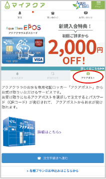会員様専用WEBサービス「マイアクア」にご登録いただき、お受け取りになるアクアポストを選択して注文すると、ご指定のアクアポストからボトルが受け取れます。